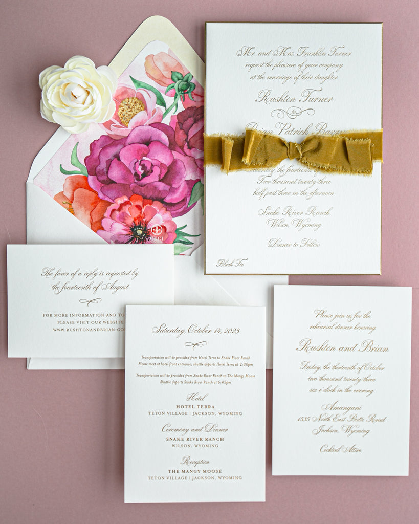 Whether you prefer a pretty paper or a graphic statement, envelope liners are a great way to make a luxurious impression. Ceci Tip: Pair a bold graphic envelope liner with a classic invitation for an update on the traditional look.