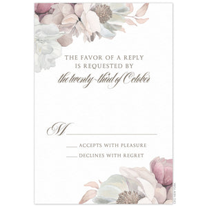 The most formal way of gathering your guest headcount and any other event preferences (meal choices, for example). Traditionally, these are paired with a coordinating envelope and request for reply one month before the event date. In countries without a strong mail system, RSVP cards may be used for requesting replies via email in lieu of mailing them back to the host.