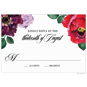 The most formal way of gathering your guest headcount and any other event preferences (meal choices, for example). Traditionally, these are paired with a coordinating envelope and request for reply one month before the event date. In countries without a strong mail system, RSVP cards may be used for requesting replies via email in lieu of mailing them back to the host.