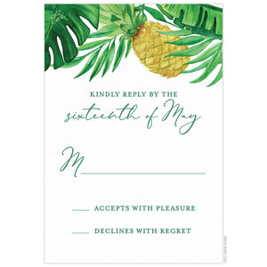 The most formal way of gathering your guest headcount and any other event preferences (meal choices, for example). Traditionally, these are paired with a coordinating envelope and request for reply one month before the event date. In countries without a strong mail system, RSVP cards may be used for requesting replies via email in lieu of mailing them back to the host.