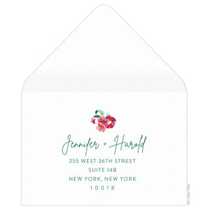 Etiquette dictates that you include a coordinating reply envelope pre-addressed to the host so guests can easily mail back their responses. Traditionally, the envelopes have postage stamps applied by the host from the country of origin. International guests are traditionally responsible for their own postage. Envelopes are not required if you are capturing replies via email.
