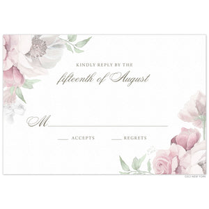The most formal way of gathering your guest headcount and any other event preferences (meal choices, for example). Traditionally, these are paired with a coordinating envelope and request for reply one month before the event date. In countries without a strong mail system, RSVP cards may be used for requesting replies via email in lieu of mailing them back to the host.