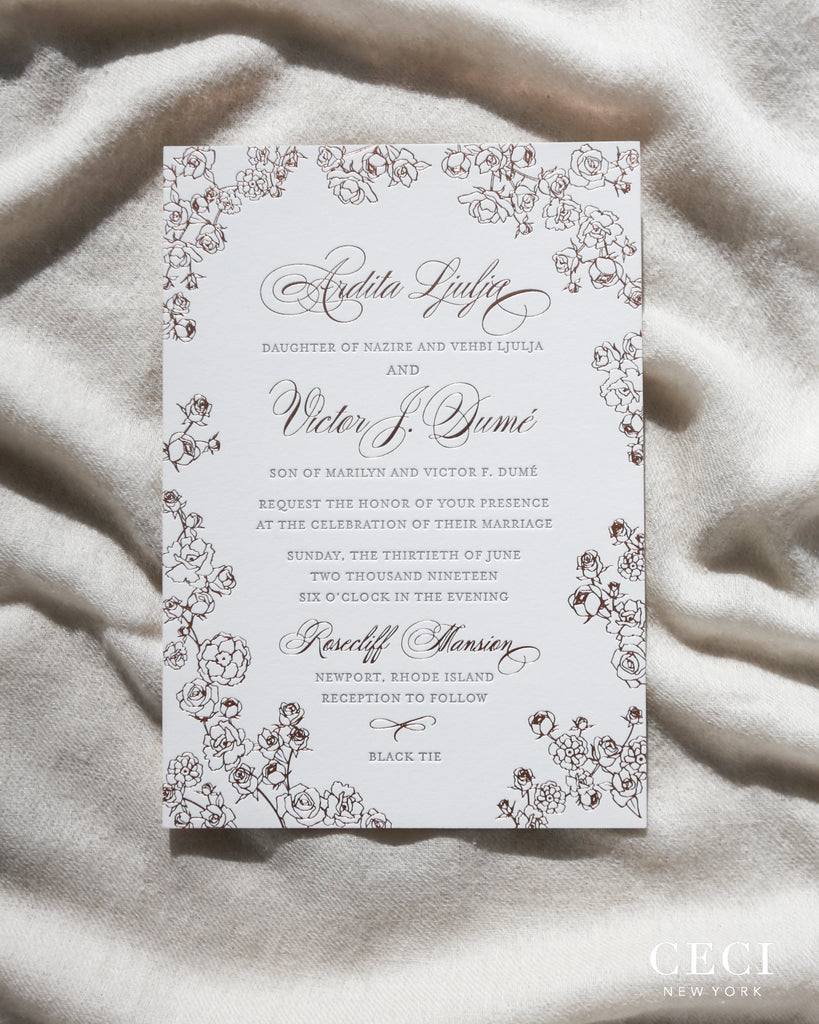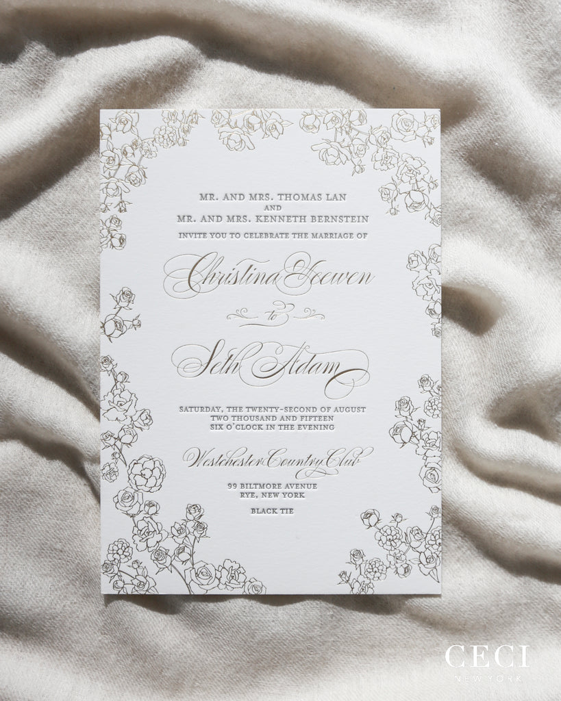Originally used for book printing dating back to the 15th century, this method, where ink is pressed into the paper, has seen a recent rise in popularity. Our special Ceci New York printing process produces an ultra deep indentation and crisp print that is regarded as the finest in the industry.