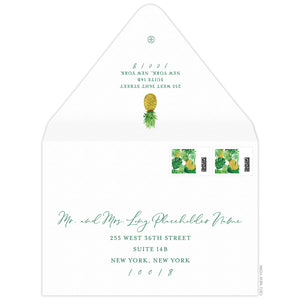 Etiquette dictates that you include a coordinating reply envelope pre-addressed to the host so guests can easily mail back their responses. Traditionally, the envelopes have postage stamps applied by the host from the country of origin. International guests are traditionally responsible for their own postage. Envelopes are not required if you are capturing replies via email.