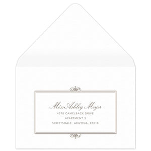 This is the outermost envelope that holds all the pieces of your suite. It’s a must have in order to safely mail your invitations.