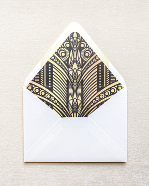 Whether you prefer a pretty paper or a graphic statement, envelope liners are a great way to make a luxurious impression. Ceci Tip: Pair a bold graphic envelope liner with a classic invitation for an update on the traditional look.