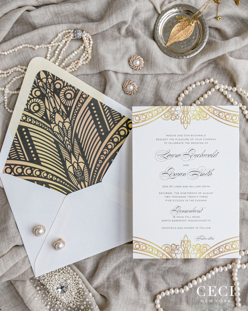 Whether you prefer a pretty paper or a graphic statement, envelope liners are a great way to make a luxurious impression. Ceci Tip: Pair a bold graphic envelope liner with a classic invitation for an update on the traditional look.