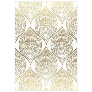 Foils, which are typically metallic, are pressed into paper stock via heated copper plates. Foil stamping adds shiny accents to a design, but can also be used to add matte colors, like white, to darker, colored papers. This technique is wildly popular adding the ultimate luxurious touch to your designs. Foil stamping is ideal if you're planning to print your entire design on black or darker colored paper stocks.