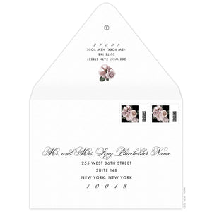 Etiquette dictates that you include a coordinating reply envelope pre-addressed to the host so guests can easily mail back their responses. Traditionally, the envelopes have postage stamps applied by the host from the country of origin. International guests are traditionally responsible for their own postage. Envelopes are not required if you are capturing replies via email.