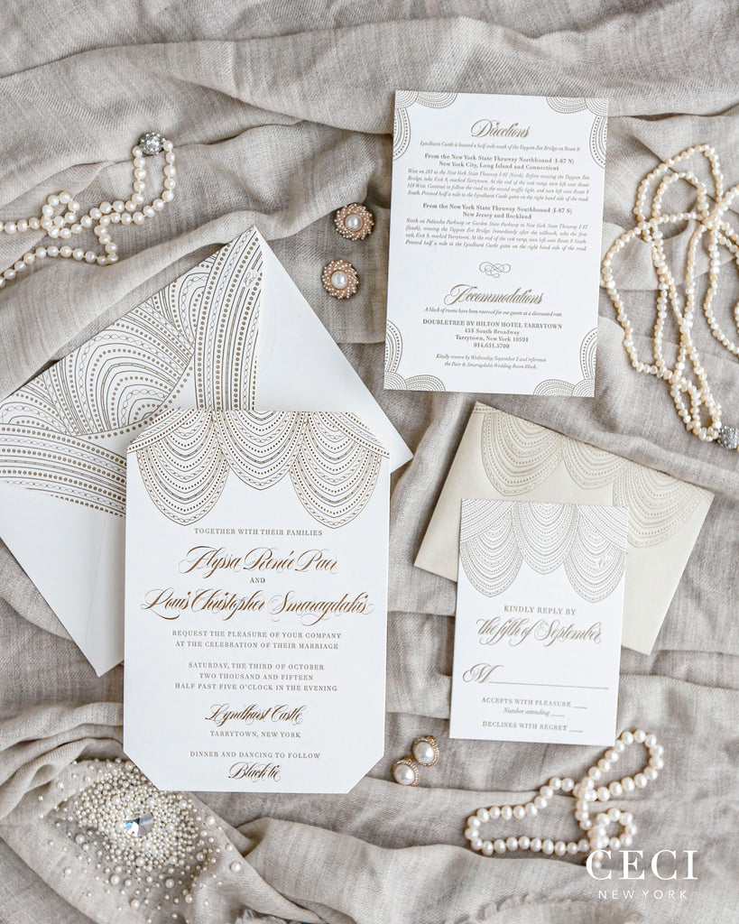 Originally used for book printing dating back to the 15th century, this method, where ink is pressed into the paper, has seen a recent rise in popularity. Our special Ceci New York printing process produces an ultra deep indentation and crisp print that is regarded as the finest in the industry.
