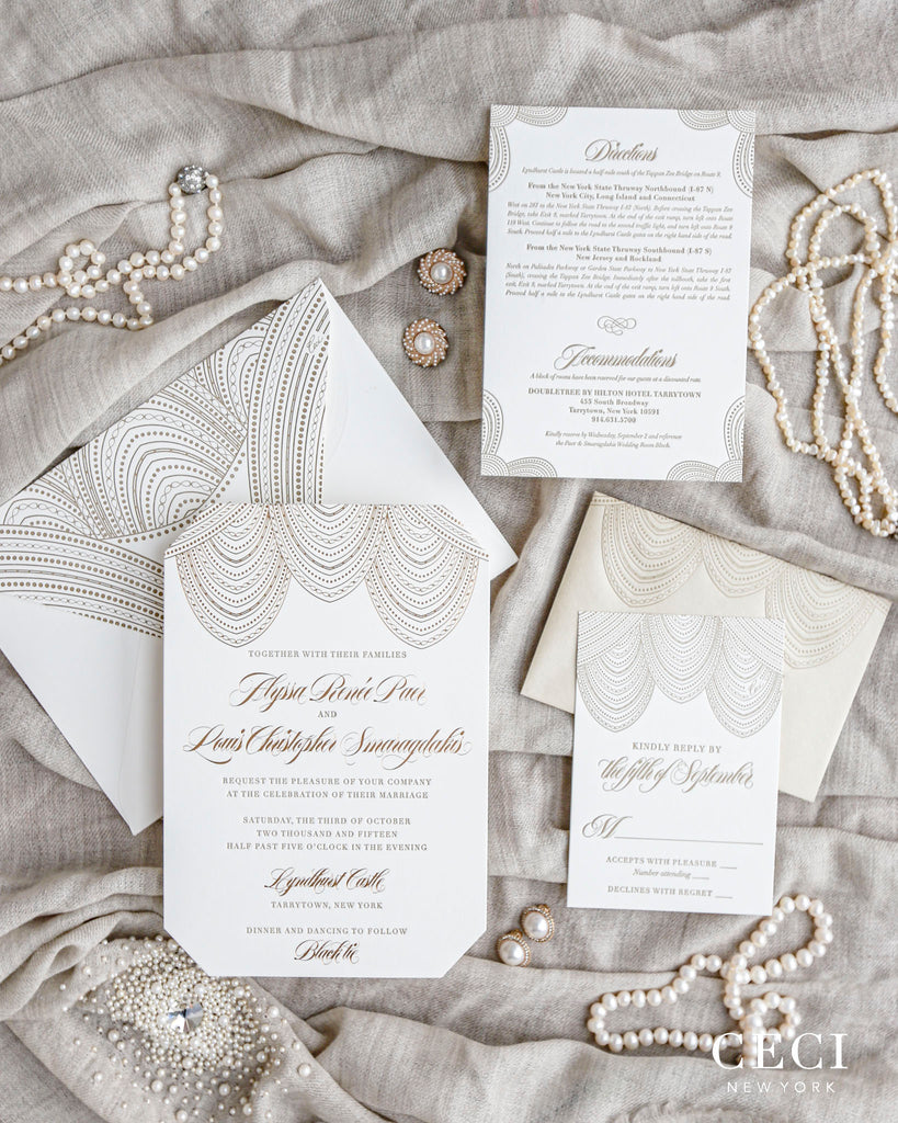 Originally used for book printing dating back to the 15th century, this method, where ink is pressed into the paper, has seen a recent rise in popularity. Our special Ceci New York printing process produces an ultra deep indentation and crisp print that is regarded as the finest in the industry.