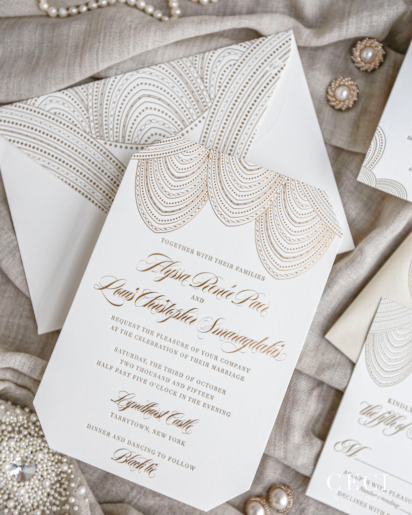 Whether you prefer a pretty paper or a graphic statement, envelope liners are a great way to make a luxurious impression. Ceci Tip: Pair a bold graphic envelope liner with a classic invitation for an update on the traditional look.