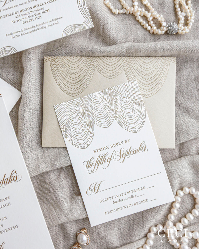 Originally used for book printing dating back to the 15th century, this method, where ink is pressed into the paper, has seen a recent rise in popularity. Our special Ceci New York printing process produces an ultra deep indentation and crisp print that is regarded as the finest in the industry.