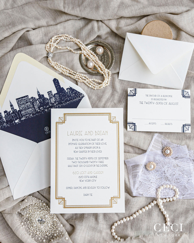 Whether you prefer a pretty paper or a graphic statement, envelope liners are a great way to make a luxurious impression. Ceci Tip: Pair a bold graphic envelope liner with a classic invitation for an update on the traditional look.
